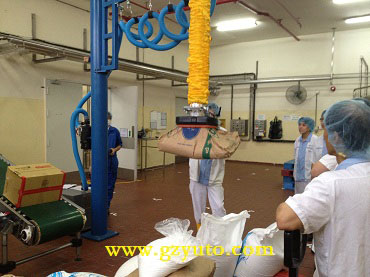 每天將數(shù)以千計的50公斤重糖袋從卡板搬運到輸送帶上, 并且跟上生產(chǎn)的節(jié)拍是一件非常有挑戰(zhàn)的工作。 傳統(tǒng)的辦法就是人力搬運。 將工人分成4組, 每組2人, 每30分鐘換班休息。 即便這樣, 仍然會出現(xiàn)體力不支, 甚至腰部扭傷的工傷事故。