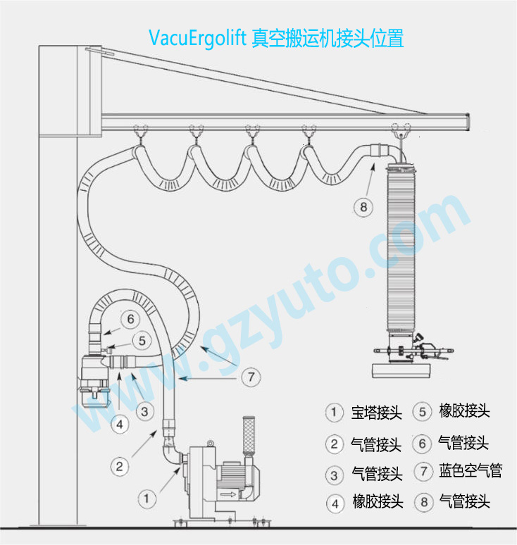 從寶塔接頭、空氣管兩端的橡膠接頭到過(guò)濾器上的橡膠接頭, 以及特制的適配器等等,我們所提供的這些配件能夠非常高效地將空氣管與提升管、真空泵和過(guò)濾器連接起來(lái), 形成一個(gè)密閉的真空系統(tǒng)。所有配件都經(jīng)過(guò)嚴(yán)格挑選,不僅耐用,而且易于安裝, 進(jìn)而最大程度發(fā)揮了高流量真空系統(tǒng)的效率。系統(tǒng)效率越高, 吸盤(pán)單位面積上的吸力就越大。 在這些配件上多花一點(diǎn)小錢就能取代價(jià)格昂貴結(jié)構(gòu)復(fù)雜的高真空真空泵, 從而為客戶節(jié)省下更多的錢。只有設(shè)備買回來(lái)能夠穩(wěn)定持續(xù)地工作數(shù)年, 客戶才能從設(shè)備上不斷獲得收益。這正是廣州粵拓VacuErgolift(易施力)系列真空搬運(yùn)機(jī)的價(jià)值所在!