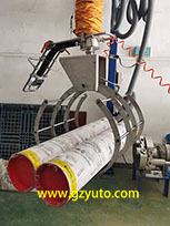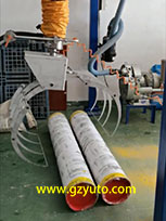 搬運(yùn)機(jī)配有專門設(shè)計(jì)的布卷夾具, 可搬運(yùn)重量90公斤、幅寬2米、 最大直徑600毫米的各類布卷、紙卷、塑料卷、金屬管等等各類圓筒狀物體。 終端夾具依靠壓縮空氣動力, 控制閥可控制夾爪張開和夾緊, 速度可調(diào)。